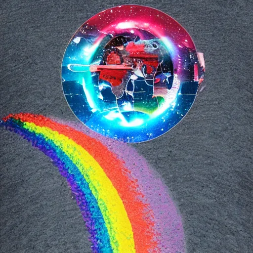 Prompt: long shot of a singular giant ball made of rainbow glass reflecting a intricate space scenery, cinematic, concept art, by asao andrews, by ridley scott, by sid mead, volumetric light, beautiful oil painting, realistic reflections, smooth, lens flare, depth perception, high depth of field, 4 k, 3 d octane render, hyperrealistic, trending on artstation