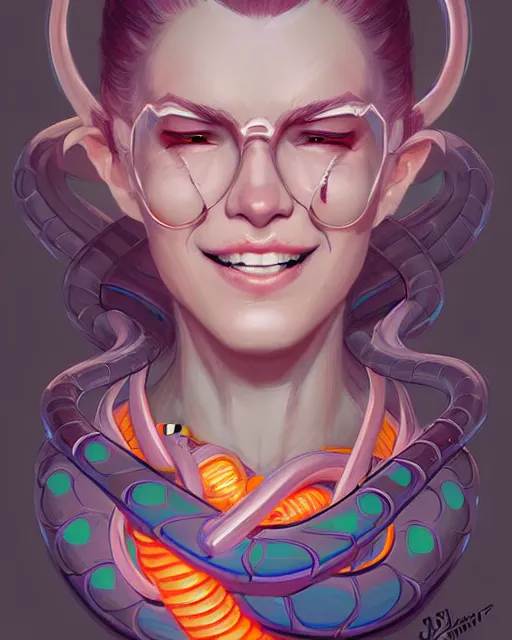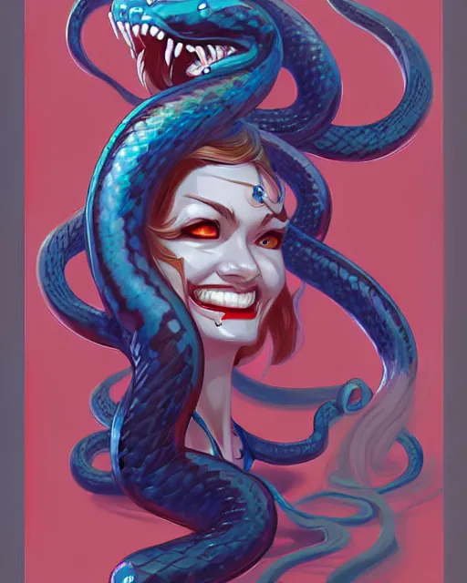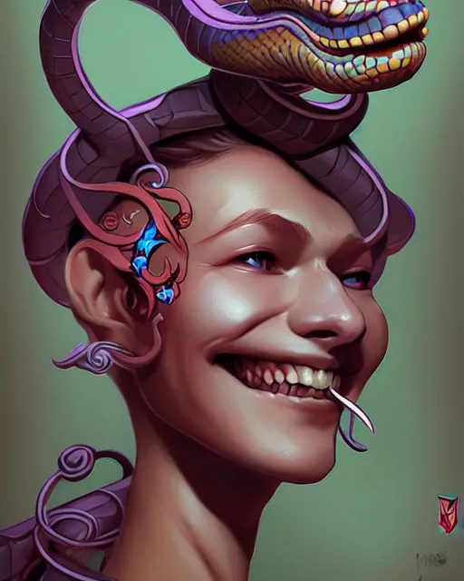 digital art, fantasy portrait of smiling snake, by james jean, by ross tran, ultra detailed, character design, concept art, trending on artstation,