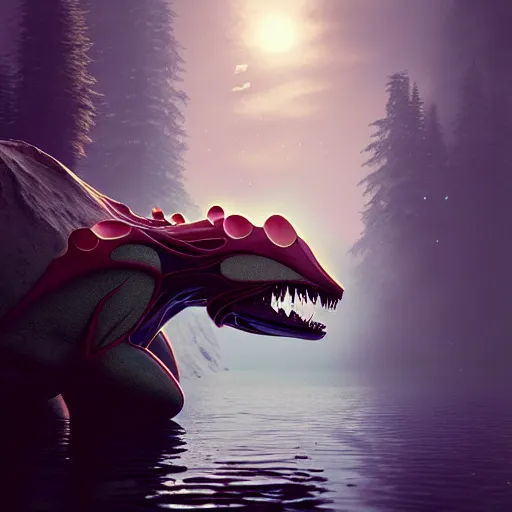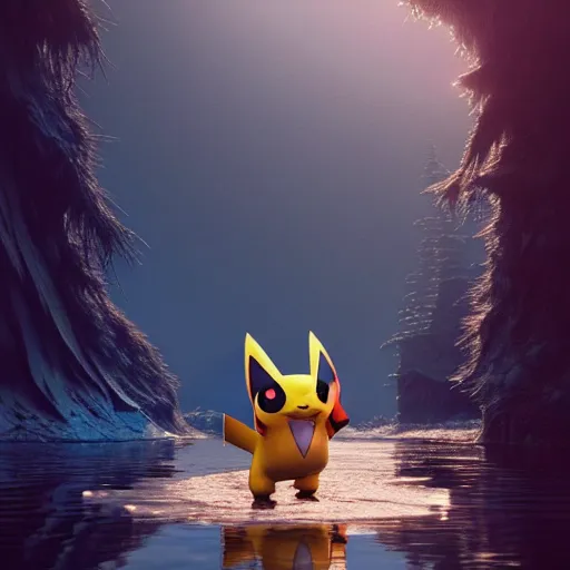 ( ( pokemon ) ) creature creature in alaska, backlit, water reflection, warm tones : : by michal...Show more