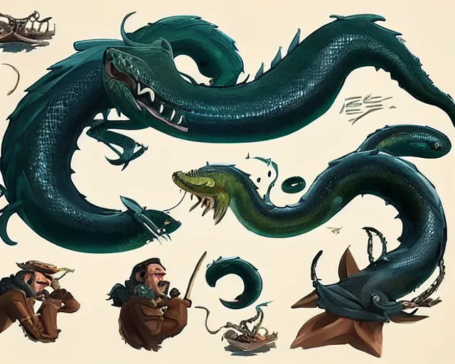 sea of thieves animal boss character concept art for a gigantic sea serpent snake leviathan, cgsociety, trending on artstation, rare ltd,