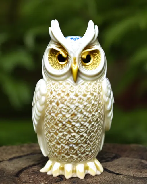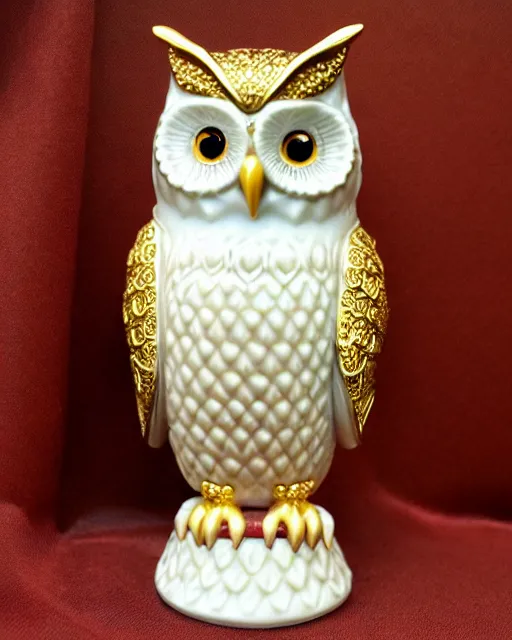 royal ornate snow white porcelain realistic detailed owl sanctuary stronghold fortess with golden filigree carved out of ivory