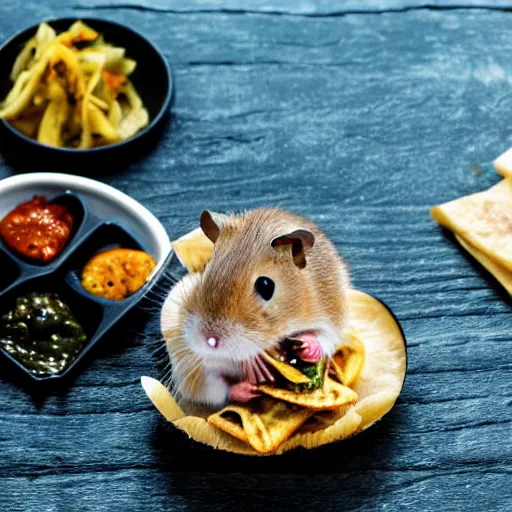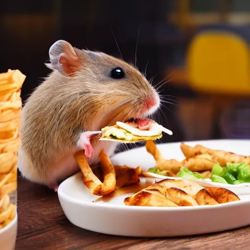detailed photo of a hamster eating a kebab, various poses, full body, daylight, 8 k