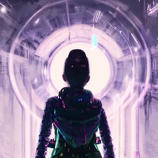 detailed portrait of a skilled magic deepdream guardian bimbo cyberpunk futuristic, reflective pu...Show more