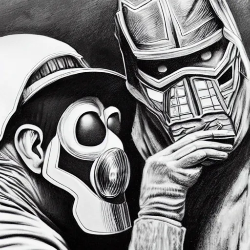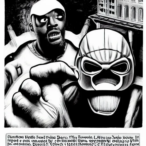 beautiful lifelike painting of mf doom and donkey kong bullying peter parker in highschool, hyperreal detailed facial features and uv lighting, art by ed roth and basil wolverton
