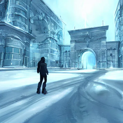 mirror's edge in russia, winter concept art, artstation, unreal engine, game screenshot with hud and hands