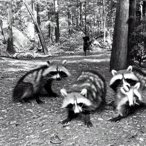 raccoons on a camping trip, 1 9 8 0 s photo