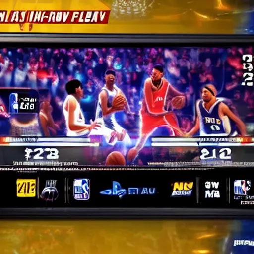 blurry shaking photograph of the main menu for nba 2 k 2 3 playing on a tv, picture taken by iphone, uncompressed,