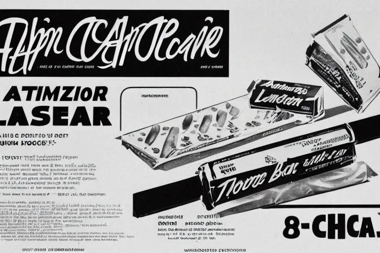 Prompt: chocolate candy bar packaging, 7 0 s style, very appealing, marketing photo