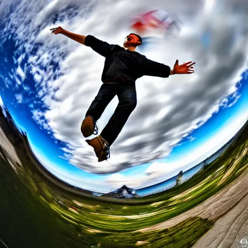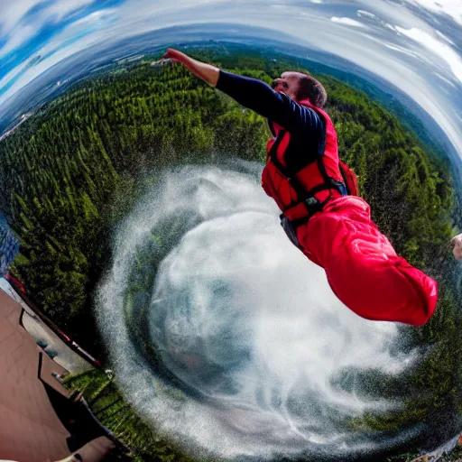a man falling to a plane, fast shutter speed, high speed, action photo, 1 / 1 0 0 0 sec shutter, fish - eye lens