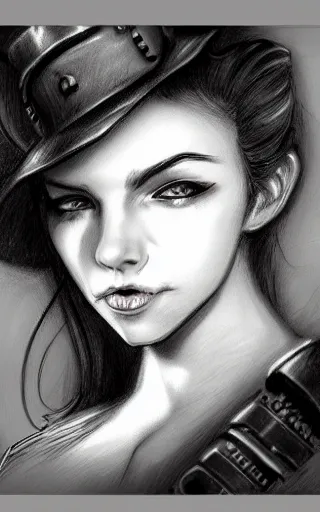 pencil drawing of a steampunk girl, medium long shot, digital art, trending on artstation