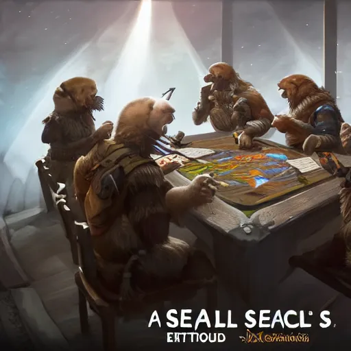 a group of seals sitting around a table, playing dnd, cinematic lighting, trending on artstation, focused, detailed