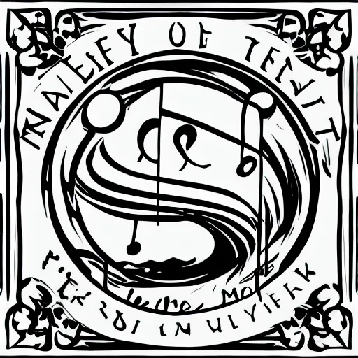 Prompt: a logo for a philosophy club, deathmetal style writing, black and white