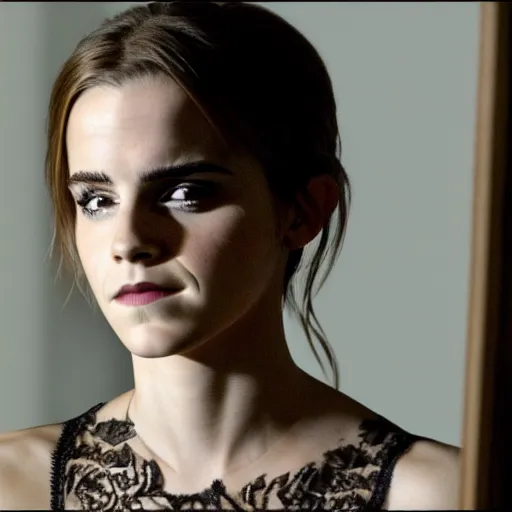 emma watson looking in the mirror, dark, intricate, highly detailed, 4 k photorealistic