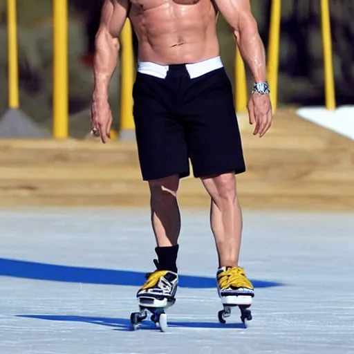 mark wahlberg skating outside in a speedo with a tophat