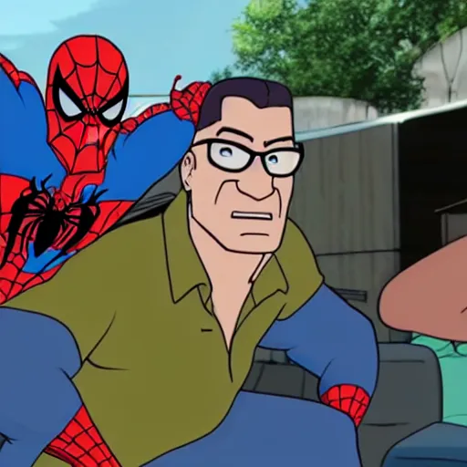 hank hill in spider man enter the spider - verse, epic, extreme detail, soft focus, cinematic,