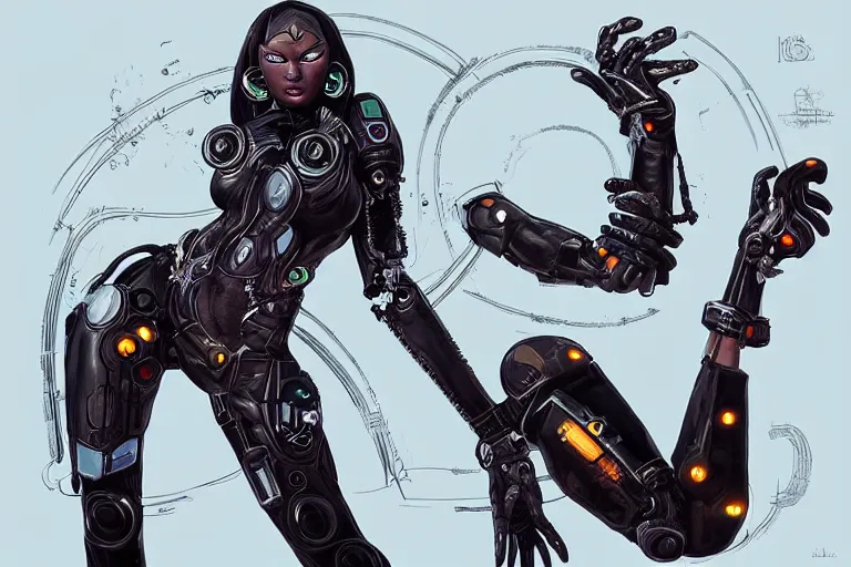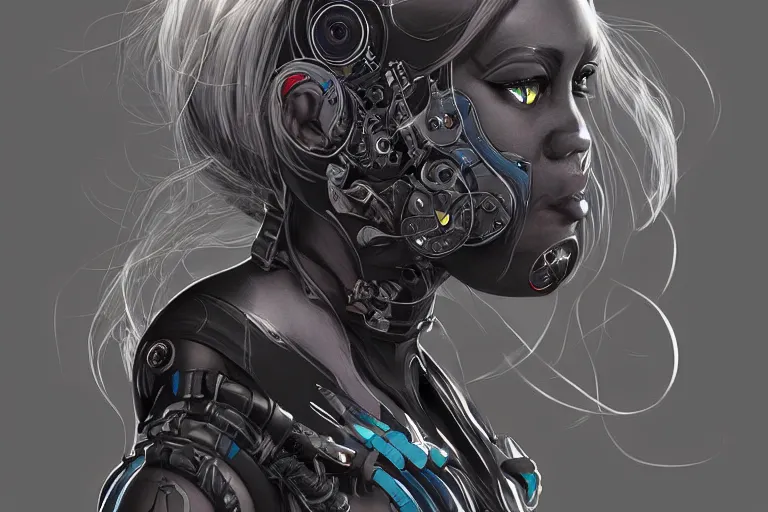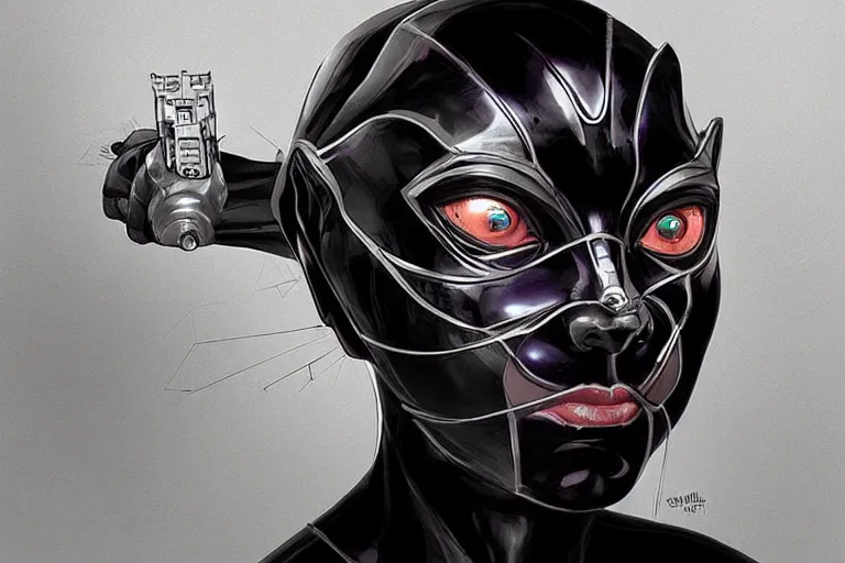 “ a extremely detailed stunning portraits of solarpunk cyborg black cat woman by allen william on artstation ”