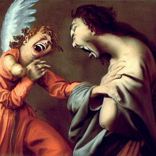 an angel laughing at a devils joke
