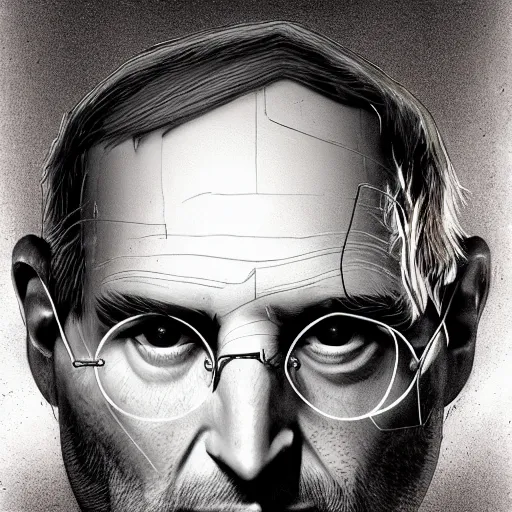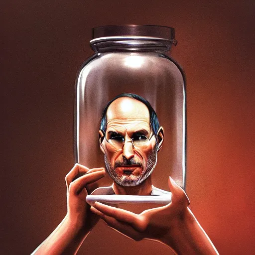 concept art of steve jobs head in jar, biological hacking by giger and jama jurabaev, still film, cinematic shot, brush hard, artstation, for aaa game, high quality, brush stroke