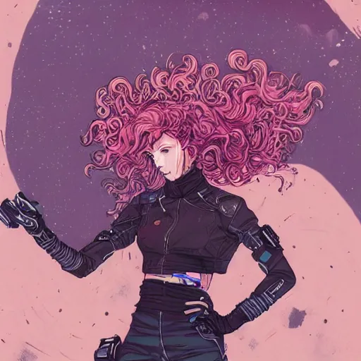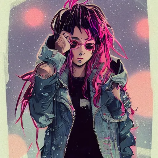 a long long long shot in wielding pose of a grungy cyberpunk anime, very cute, by super ss, cyber...Show more