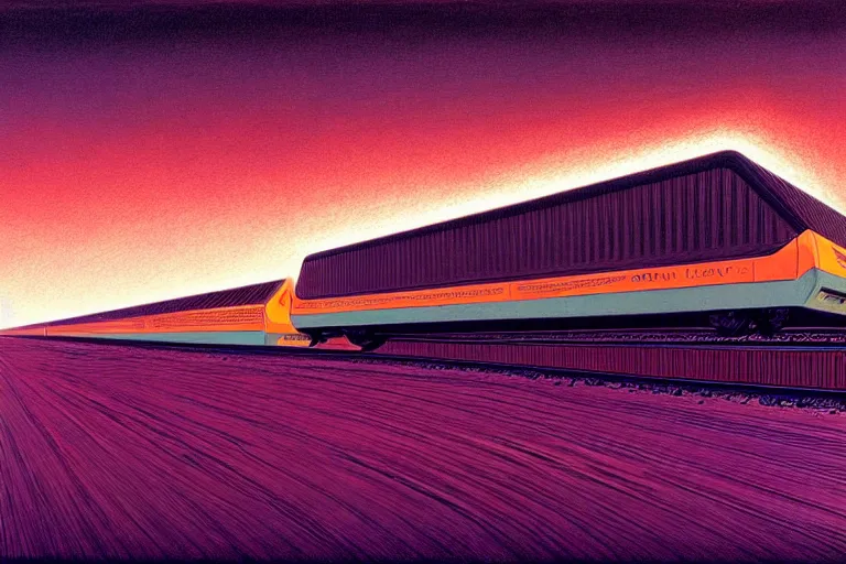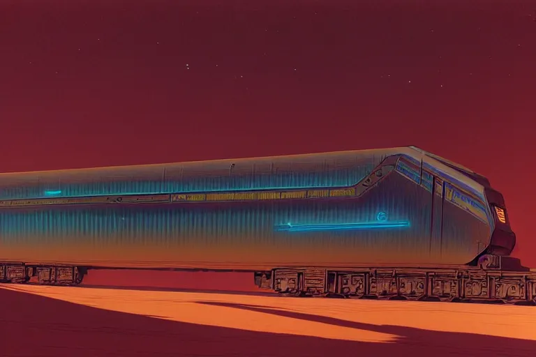 a huge train car traveling through the desert, futuristic, fantasy, intricate, elegant, dramatic...Show more