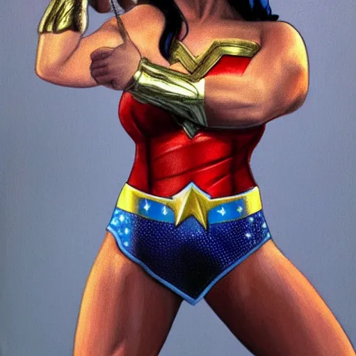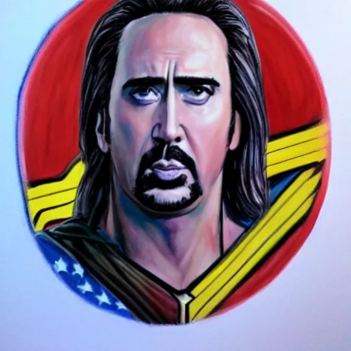 nic cage as wonder woman, buff, painted portrait, highly detailed,