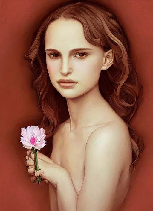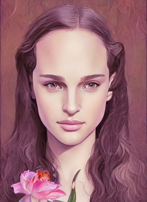 well - lit art nouveau face portrait of a 1 3 - year old girl wih resembles natalie portman and e...Show more