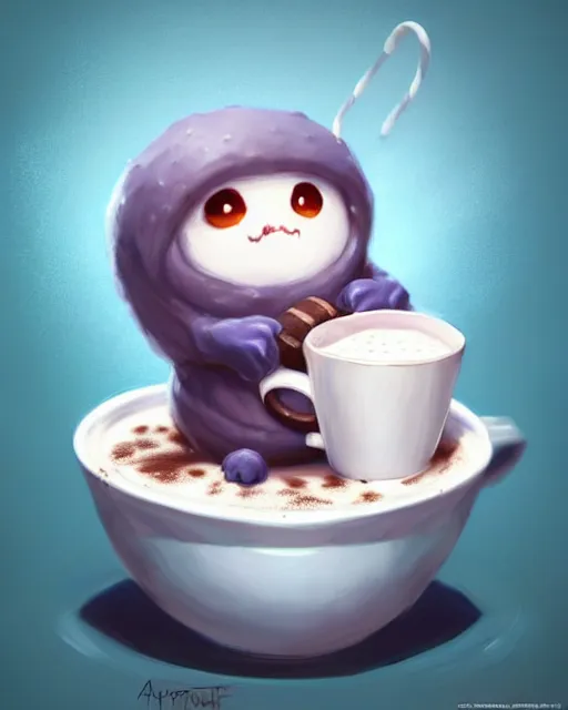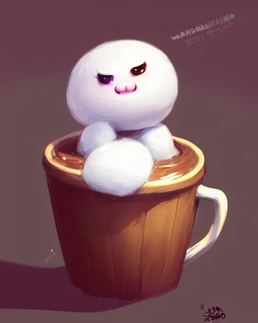 concept art of a marshmellow creature, sitting in a cup of hot cocoa | | cute - fine - fine details by stanley artgerm lau, wlop, rossdraws, and sakimichan, trending on artstation, brush strokes