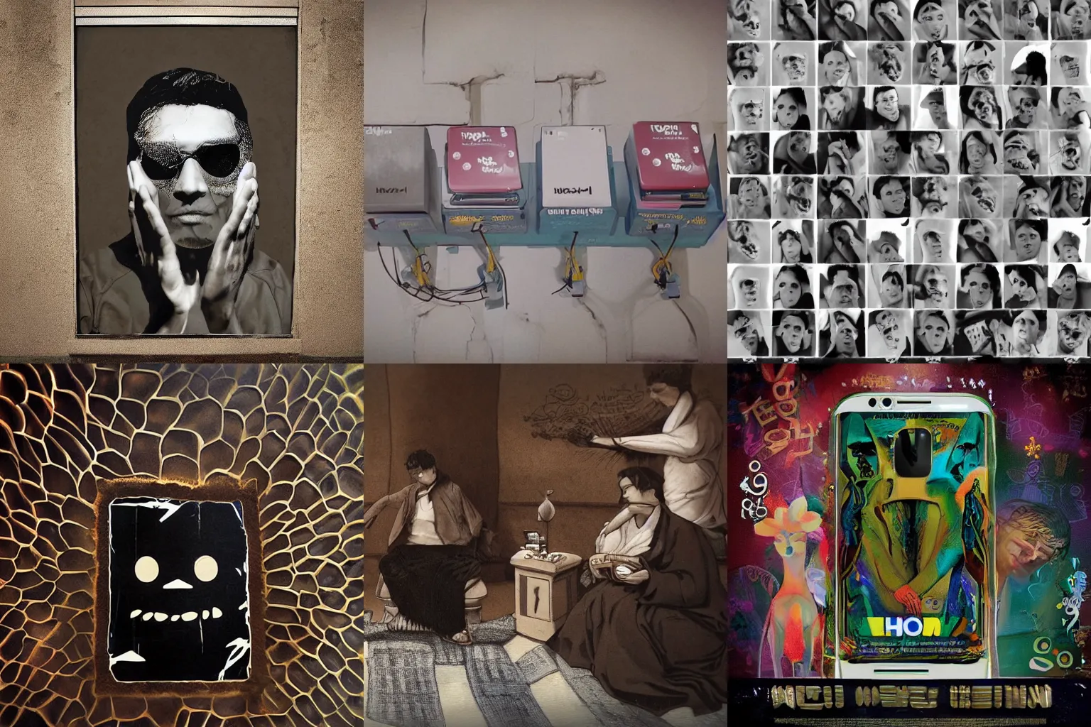 Prompt: stunning painting of the man hiding inside the Stable Diffusion machine drawing all the images
