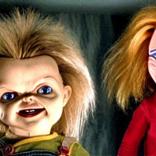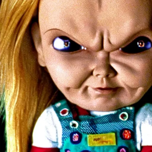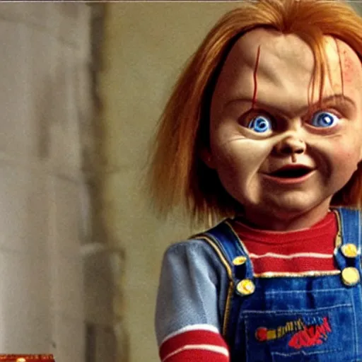 Prompt: Chucky the killer doll from the movie Child's Play scary movie still 8k hdr creepy lighting
