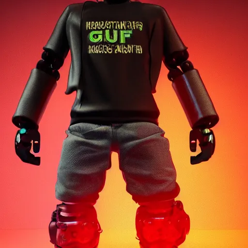 hiphop gangsta robot, led screens, expressive, photo realistic, dramatic cinematic lighting, octane render, 4 k, ultra detailed