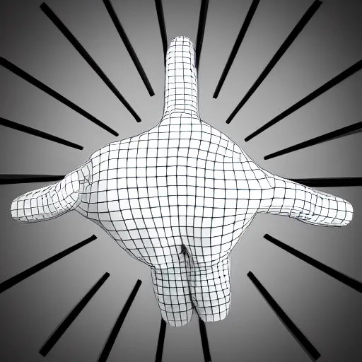 Prompt: 3d render Human figure made with lines, hyper realistic vfx simulation.