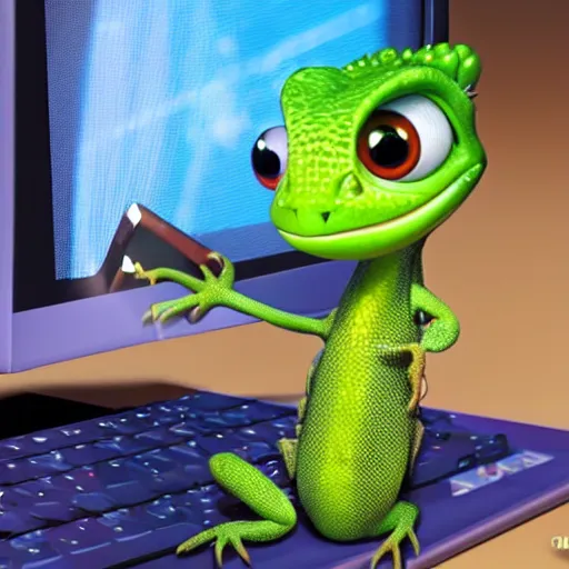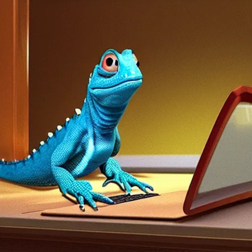 a lizard using a computer, pixar,