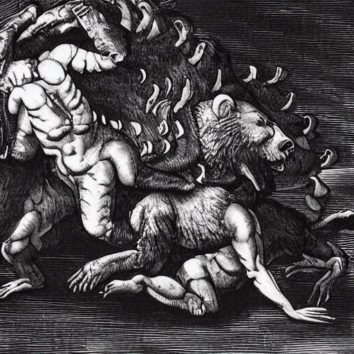 demonic bear crawling out of the pits of hell, renaissance painting