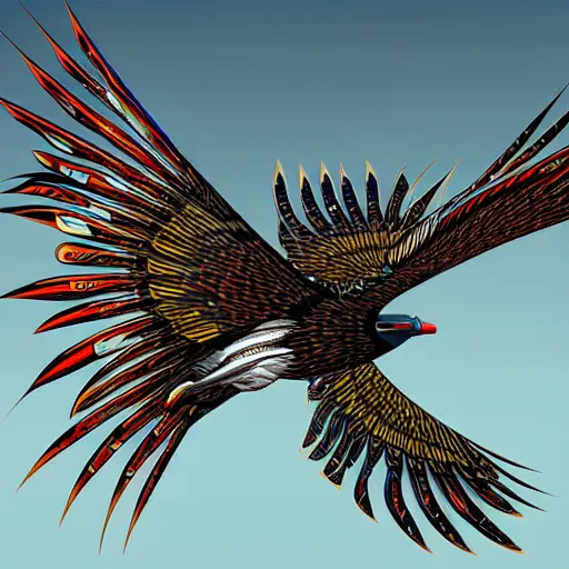 flying hawk with cybernetic aerodynamic parts, close shot, speed, dynamic, expression, digital art