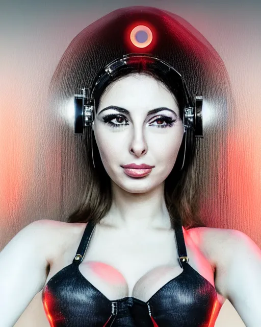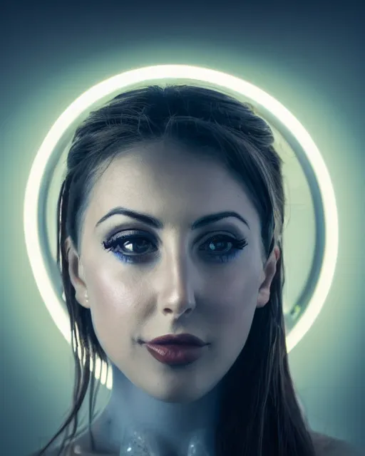 centered portrait of flirtatious young sabrina salerno as a solarpunk mecha humanoid robotic part...Show more