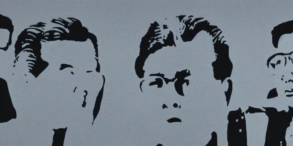 kim jong - il silhouette, 1 9 6 0 s pyongyang, film noir in the style of ghost in the shell by mamoru oshii