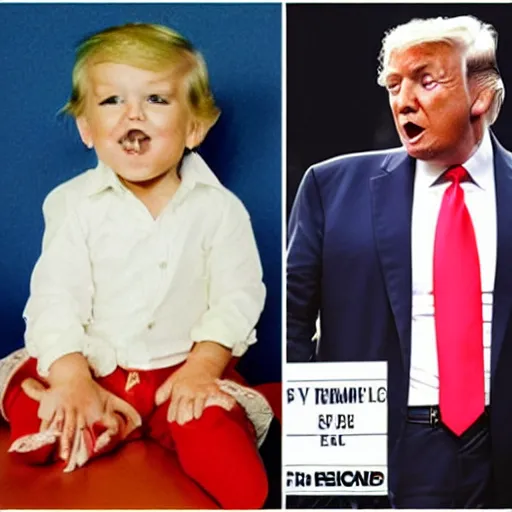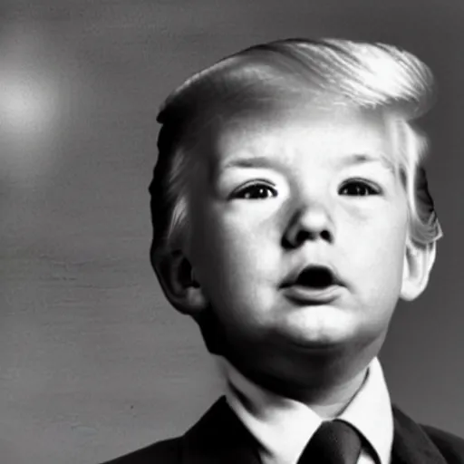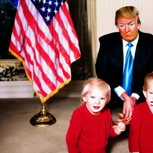 Prompt: Donald Trump crying behind a small child, realistic, photograph