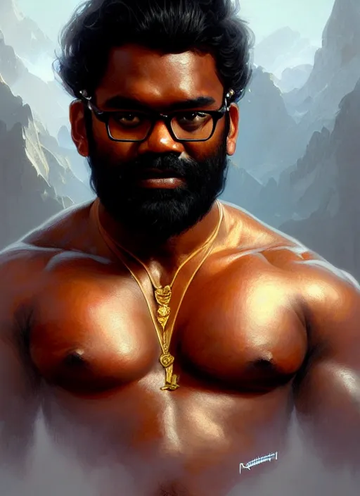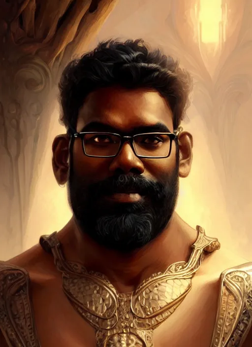 portrait of romesh ranganathan, d & d, muscular! fantasy, intricate, elegant, highly detailed, di...Show more