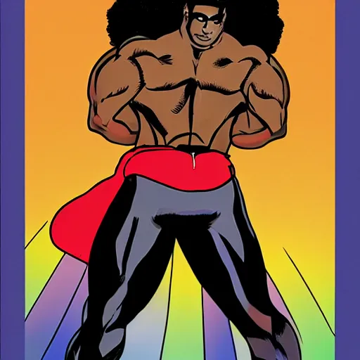 Prompt: photorealistic black superman flying. super detailed. super muscled. super cape
