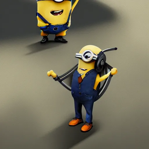 an epic painting minion going to office work in new suite and tie, pencil drawing, perfect compos...Show more