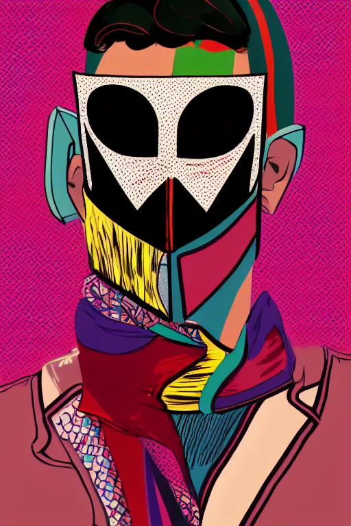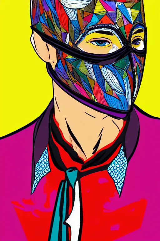 random masked guy with blouse, pop art, aesthetic art, 8 k, asymmetrical, high details, digital p...Show more