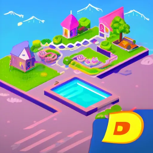 Prompt: isometric game level by style of supercell games, octane render, concept art