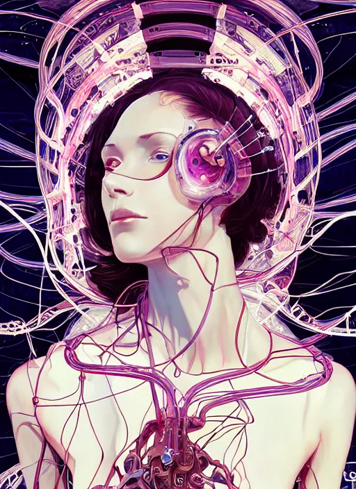 beautiful woman, portrait, made of shapes, wires, tubes, veins, jellyfish, white bio - mechanical...Show more