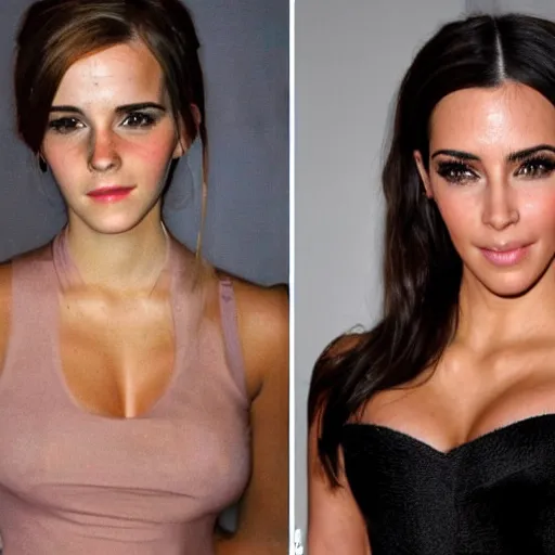 a full - figure image of a woman who is a genetic combination of emma watson and kim kardashian