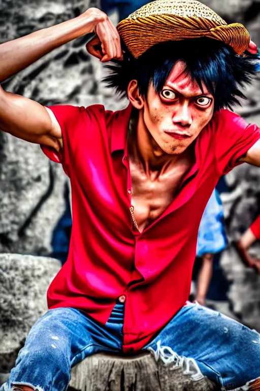 pictufe of real life monkey d luffy, hyperdetailed, hyperrealism, vogue photo style, proportional...Show more