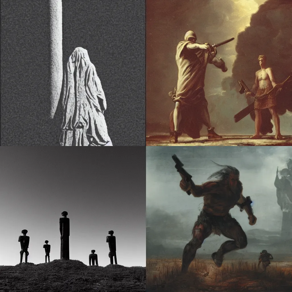 a lone figure takes up arms against two unholy giants