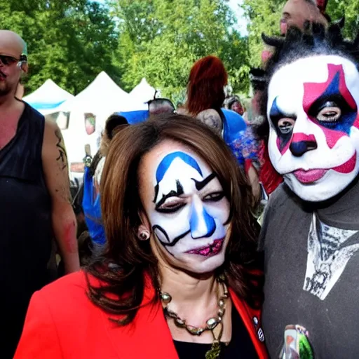 kamala harris wearing juggalo facepaint, photo taken at gathering of the juggalos