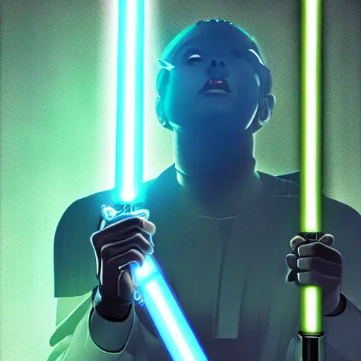 Prompt: Jedi duelling, 4k, cinematic, realistic, vaporwave