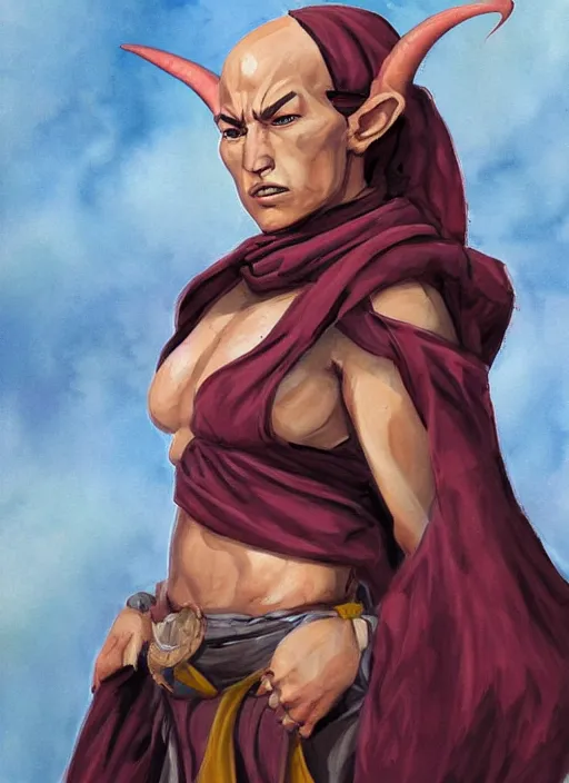a tough female d & d tiefling monk painted by raymond swamland