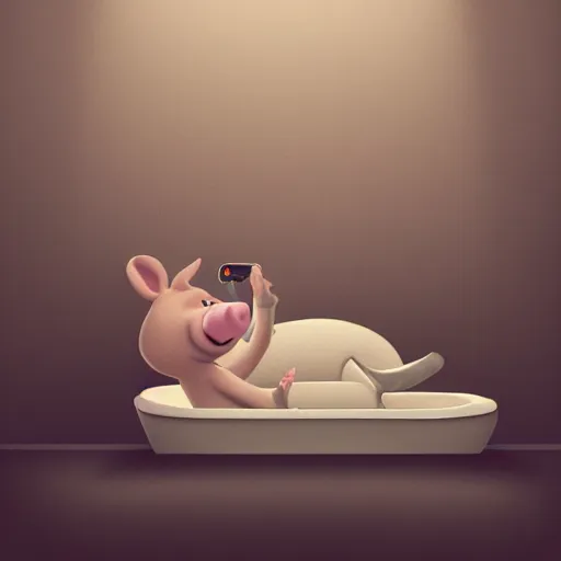 a cartoon humanoid anthropomorphic pig lay in the tub, smoking, digital art, very strong lighting, trending on artstation